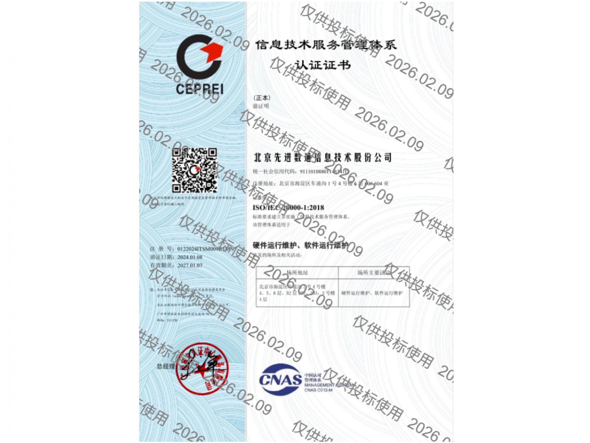 • ISO20000信息技术服务管理体系认证