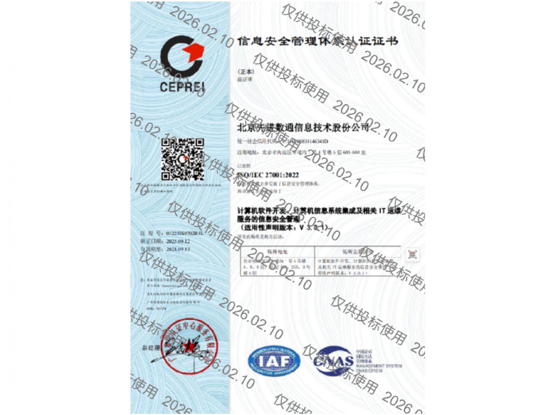 • ISO27001信息安全管理体系认证