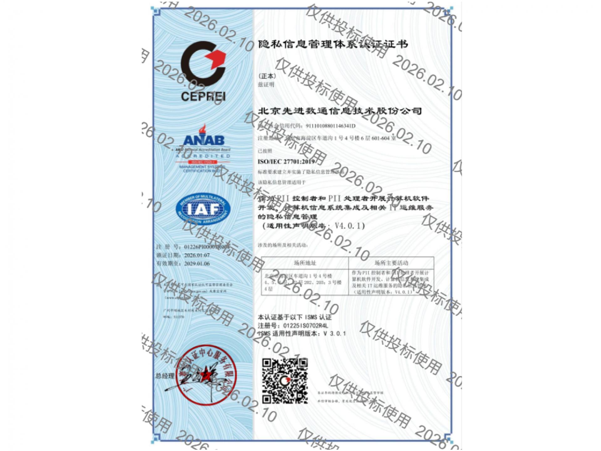 • ISO27701隐私信息管理体系认证