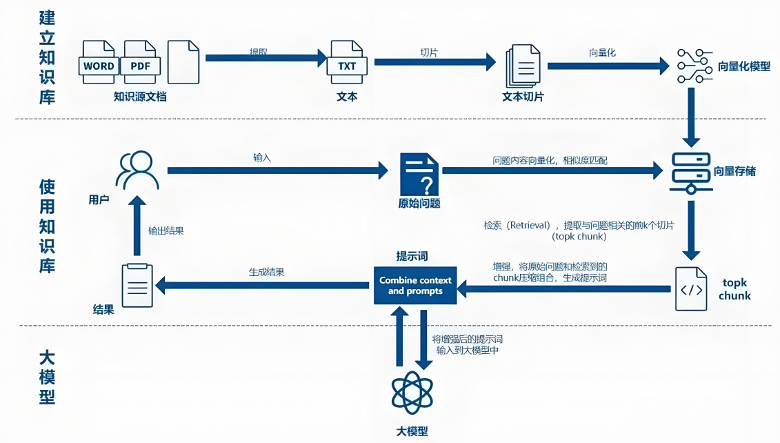 系统由13个模块组成RAG系统,采用分布式模块化部署,更易于优化升级和问题定位。通过"向量编码+语义重排序"技术(BGE Reranker模型),从知识库中筛选最相关片段,输入大模型,生成可信回答。